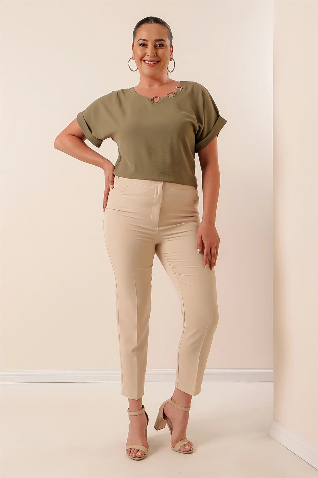 Pamuk, viskon ve modal gibi nefes alan kumaşlar, büyük beden giyimde terlemeyi önler ve gün boyu konfor sağlar. By Saygı Butik, koleksiyonlarında cilde dost bu içeriklere öncelik verir.