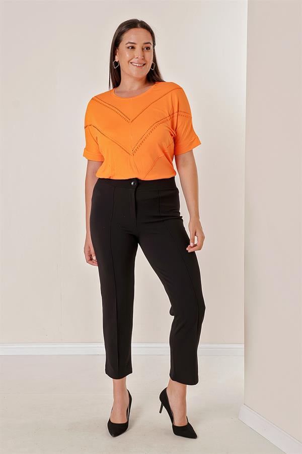 Krep Çimalı Dar Paça Büyük Beden Pantolon (S-23K4130012)