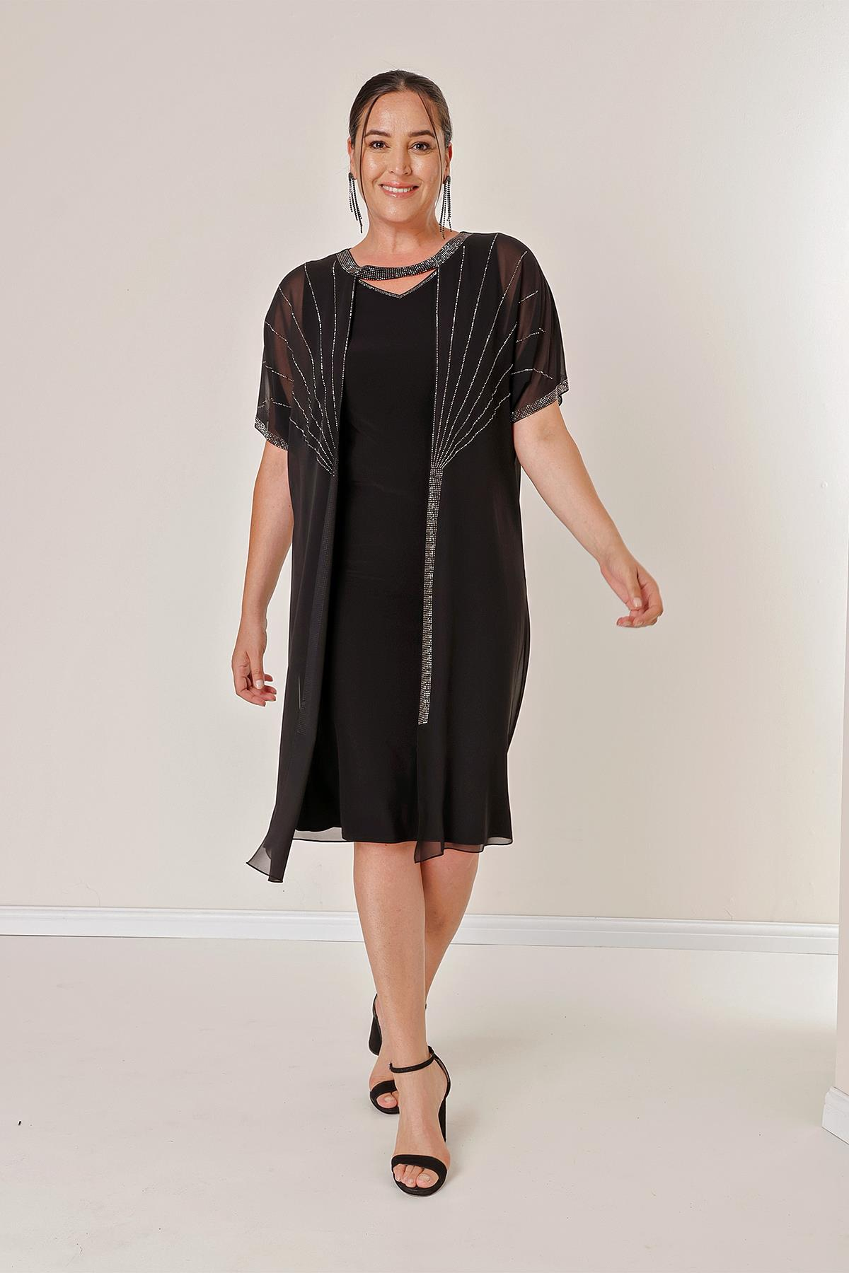 S-23K4010011Üstü Şifon Taş Detaylı Yaka Pencereli Likralı B.B. Elbise