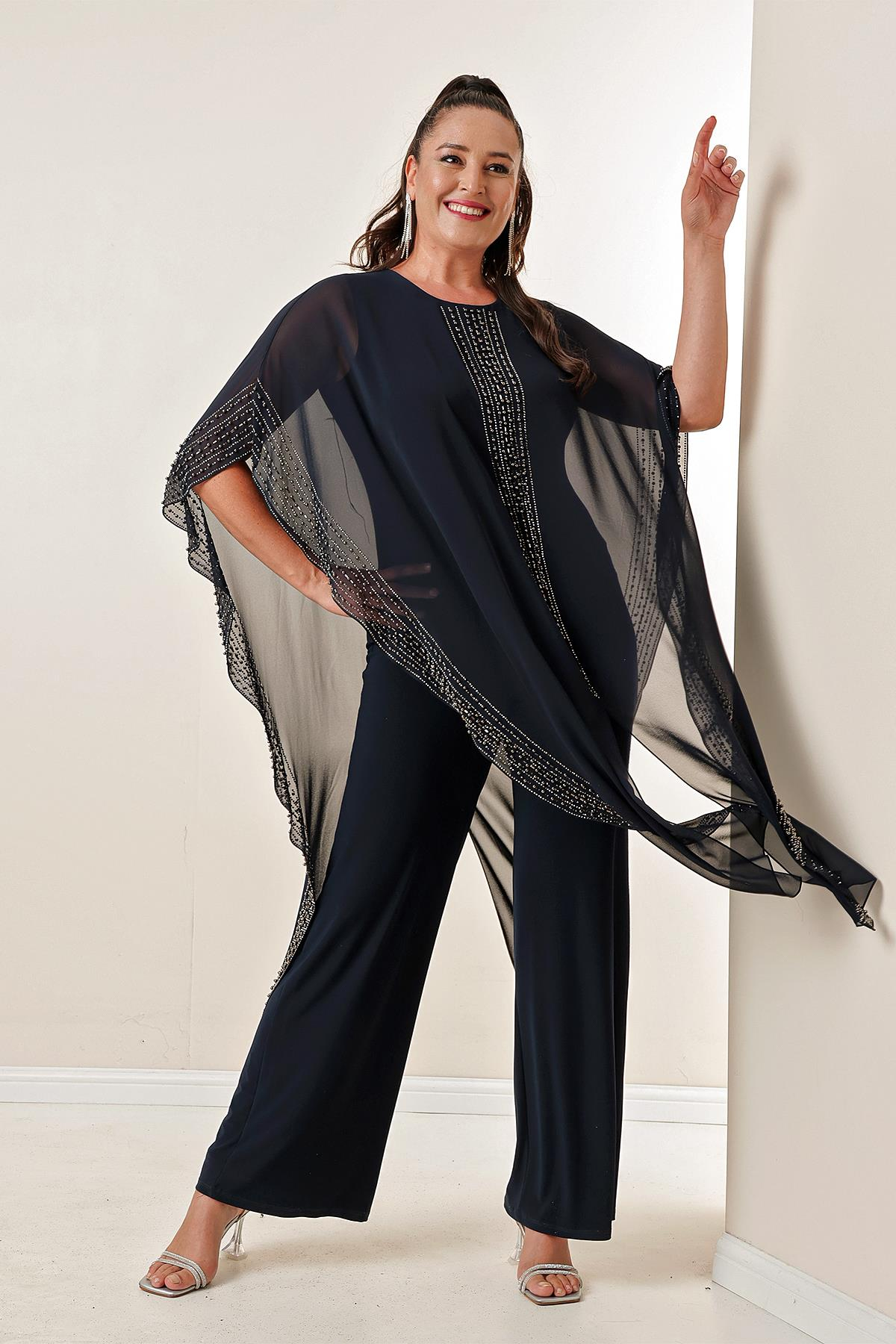 S-23K4010009Üstü Taş Boncuk Detaylı Şifon Likralı B.B. Tulum