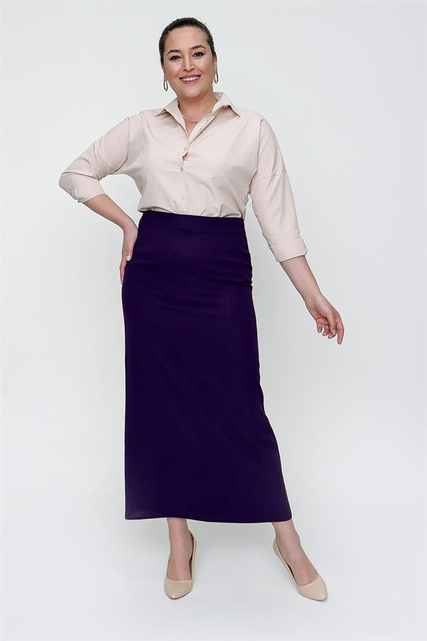 Astarlı Büyük Beden İthal Krep Uzun Etek (S-21K1190040)