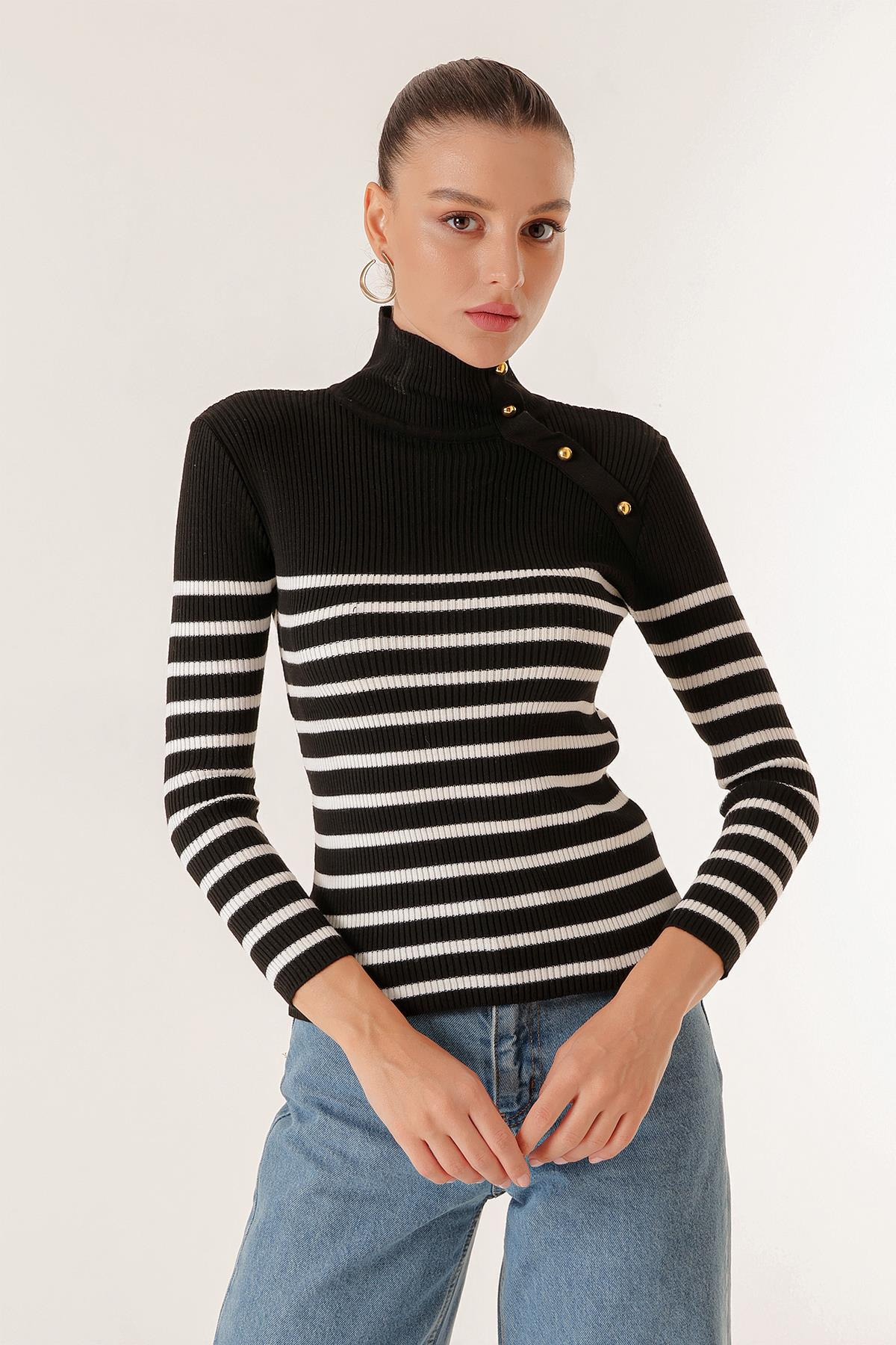Blazer Çizgili Omzu Süs Düğmeli Boğazlı Kazak (S-23K2060063)