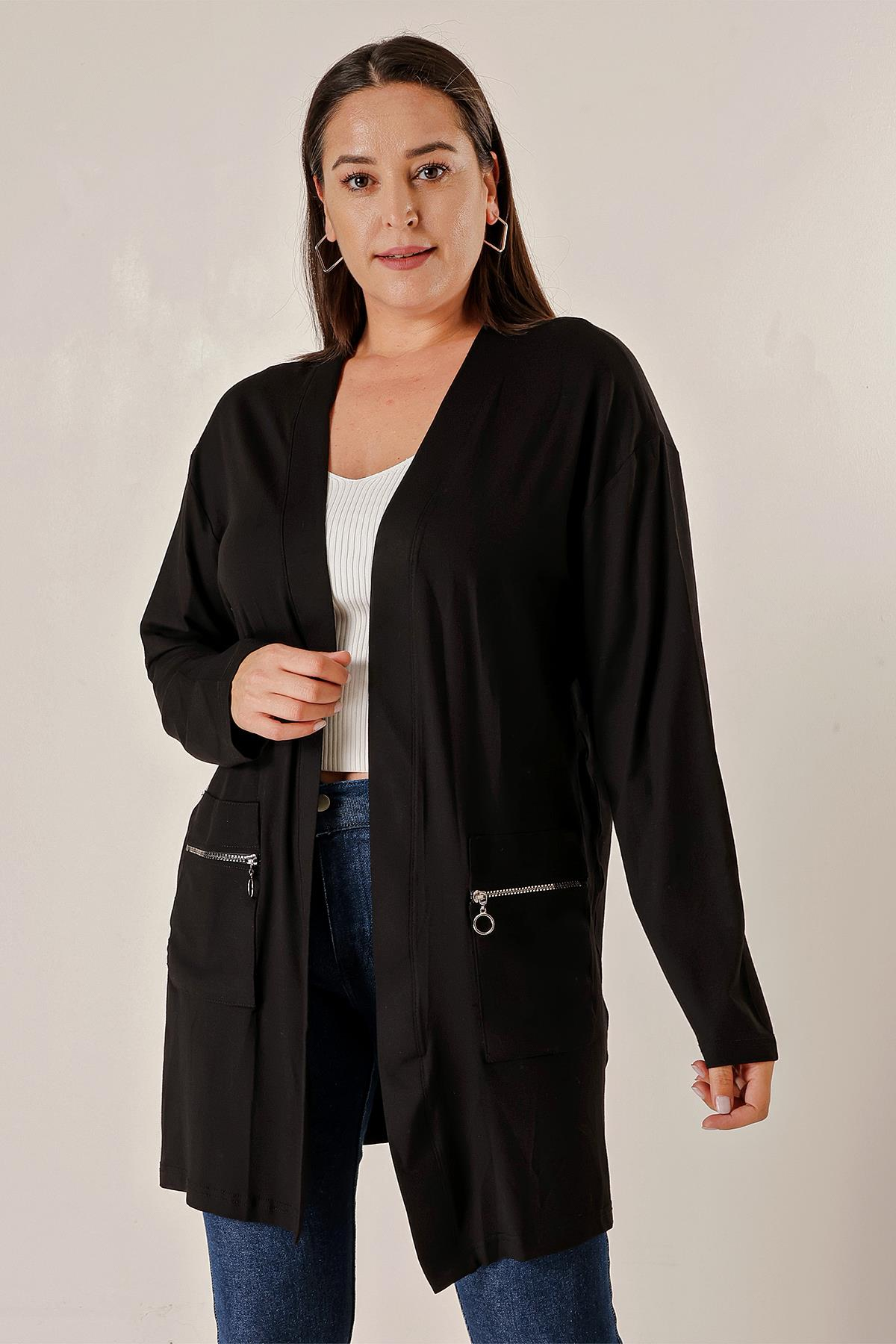 S-23K1800012Cepleri Fermuarlı Uzun Kollu Büyük Beden Hırka