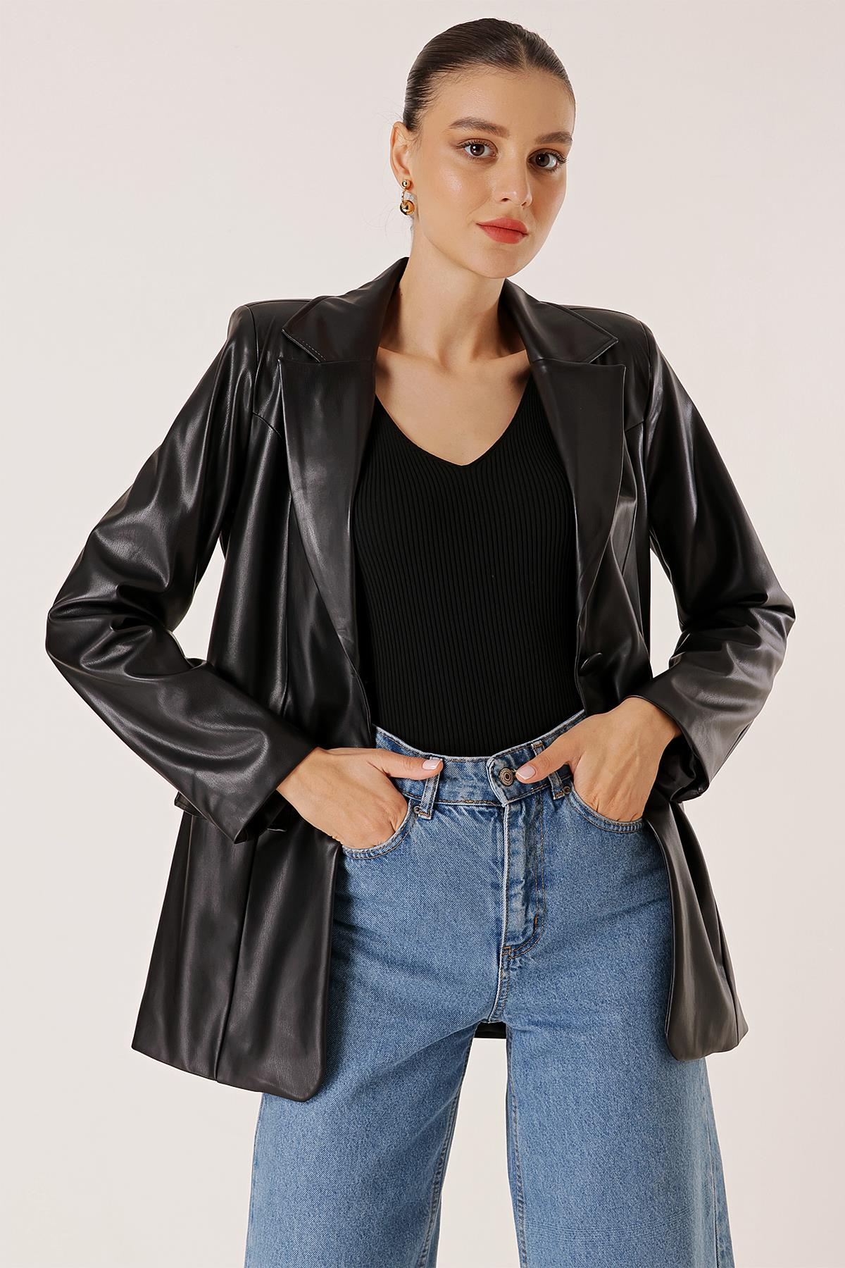 Çift Düğmeli Sahte Cepli Astarlı Deri Ceket (S-23K4200002)