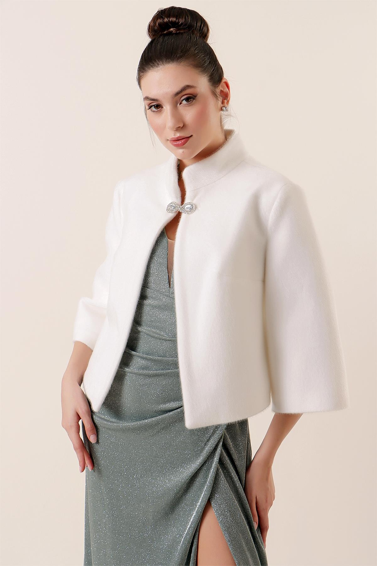 İçi Astarlı Önü Taş Detaylı Tay Tüyü Bolero Kürk Ceket (S-22K1040069)