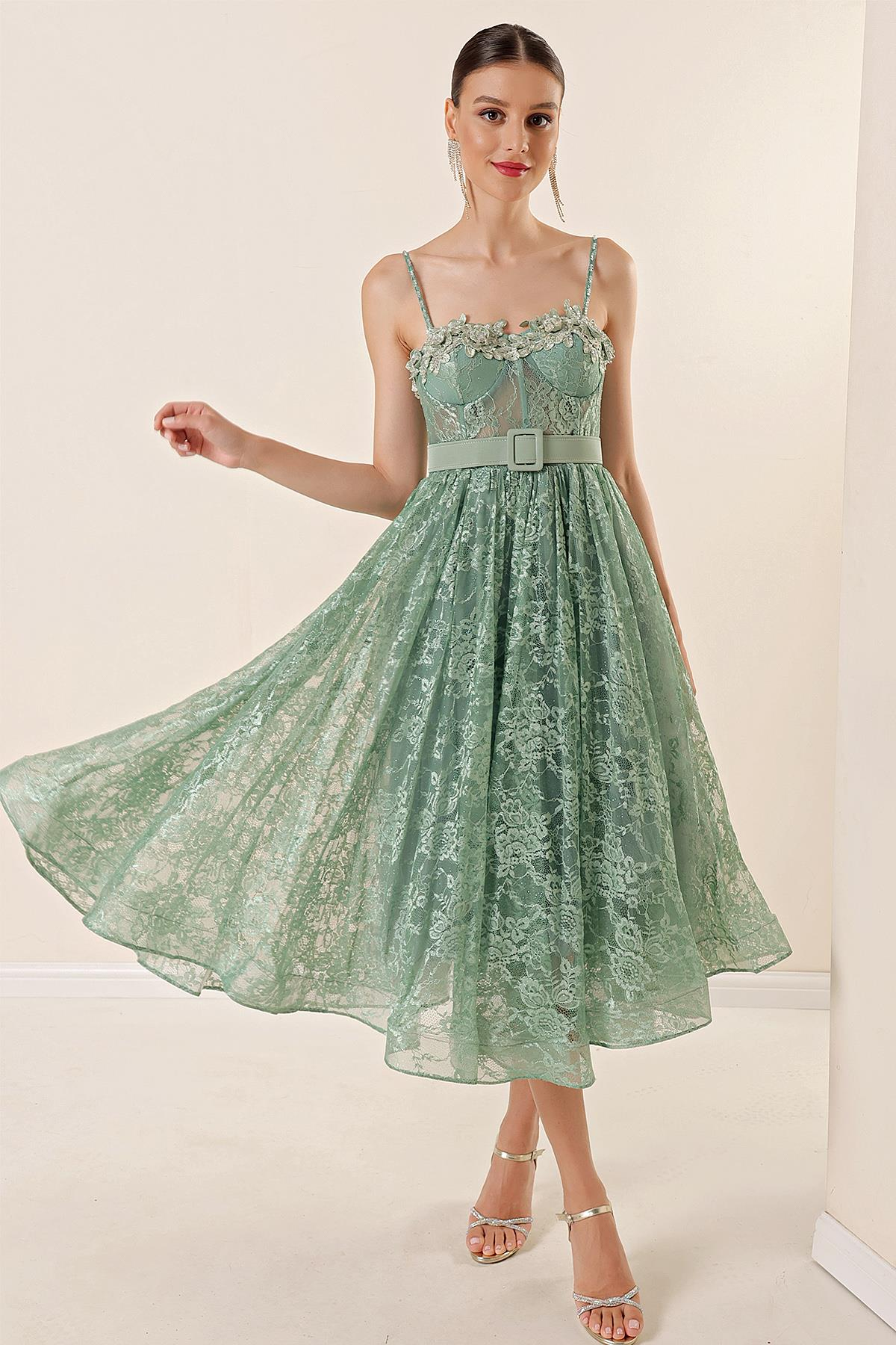 S-23K3050009İp Askılı Balenli Astarlı Beli Kemerli Tül Elbise