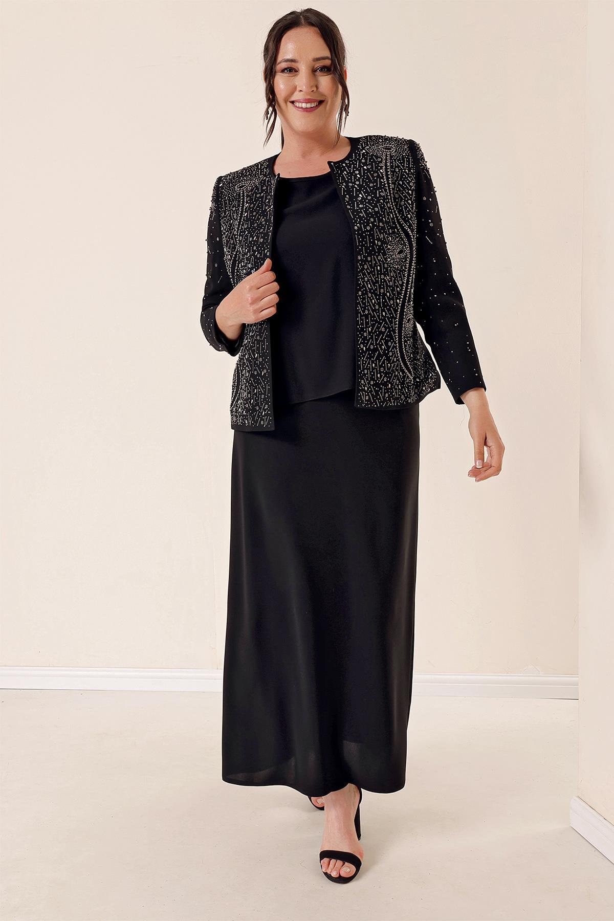 S-23K1190006İthal Krep Boncuk İşlemeli Astarlı Üçlü B.B. Takım