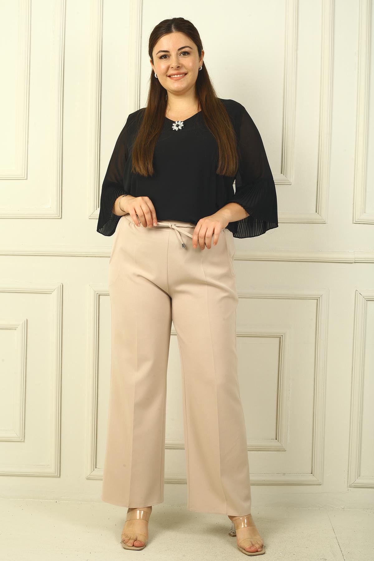 S-24Y3970002Kadın Beli Lastikli Yandan Cepli Viskon Palazzo Büyük Beden Pantolon