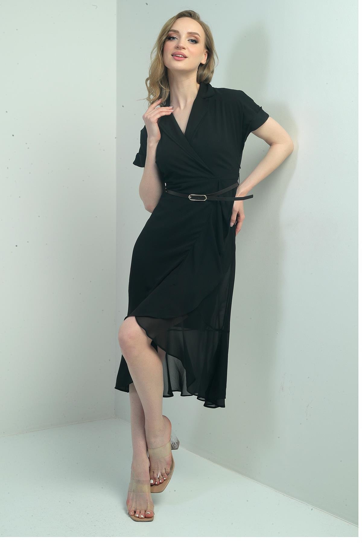 S-25Y0840018Kadın Kruvaze Yaka Astarlı Önü Volanlı Şifon Elbise