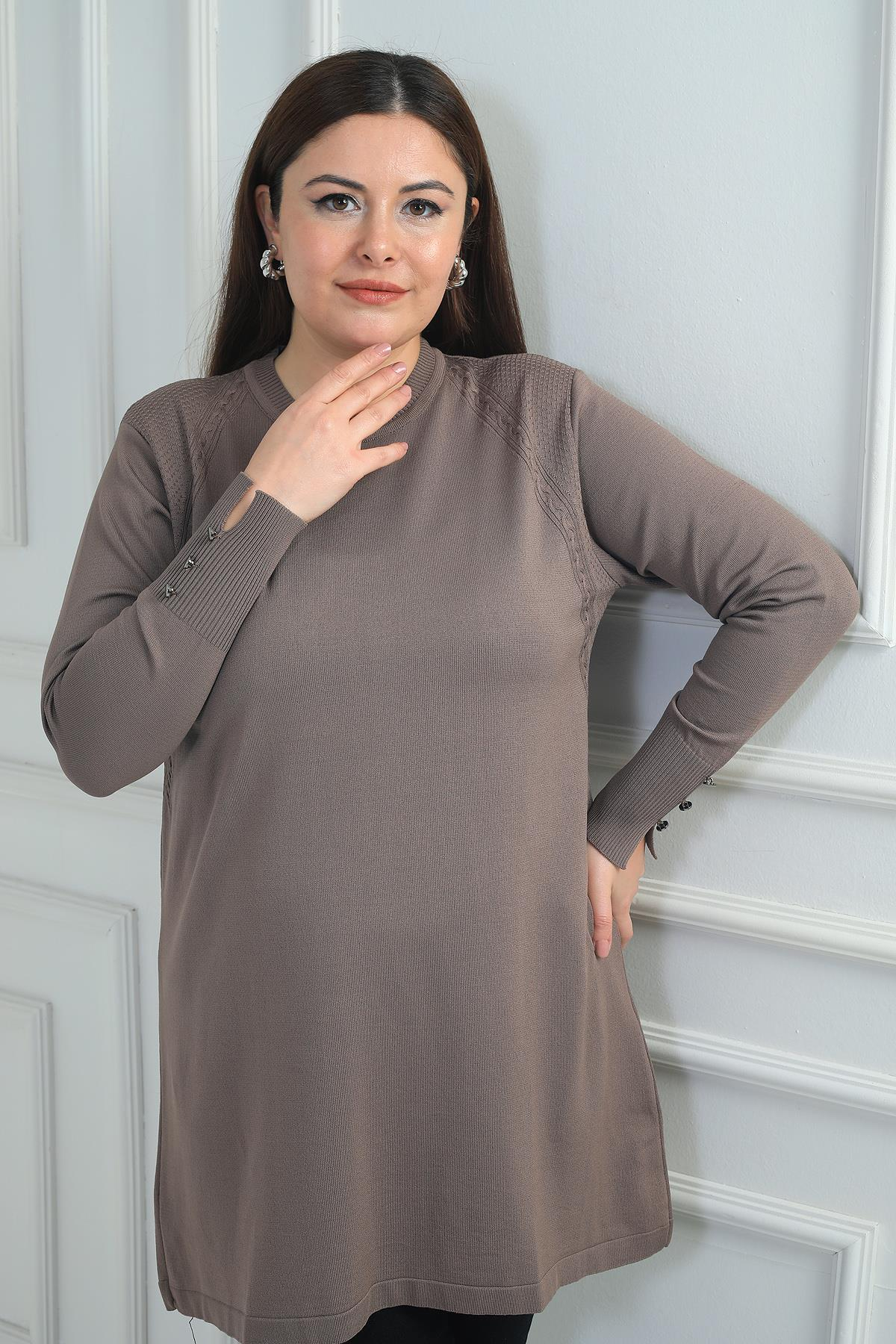 Kadın Ön Yanlar Saç Örgülü Büyük Beden Soğuk İplik Tunik Bluz (S-26K1800056)