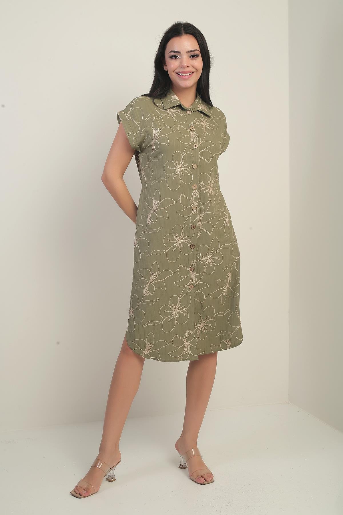 Kadın Yanları Yırtmaçlı Kısa kollu Kordeneli Cepli Gömlek Elbise (S-25Y0840036)