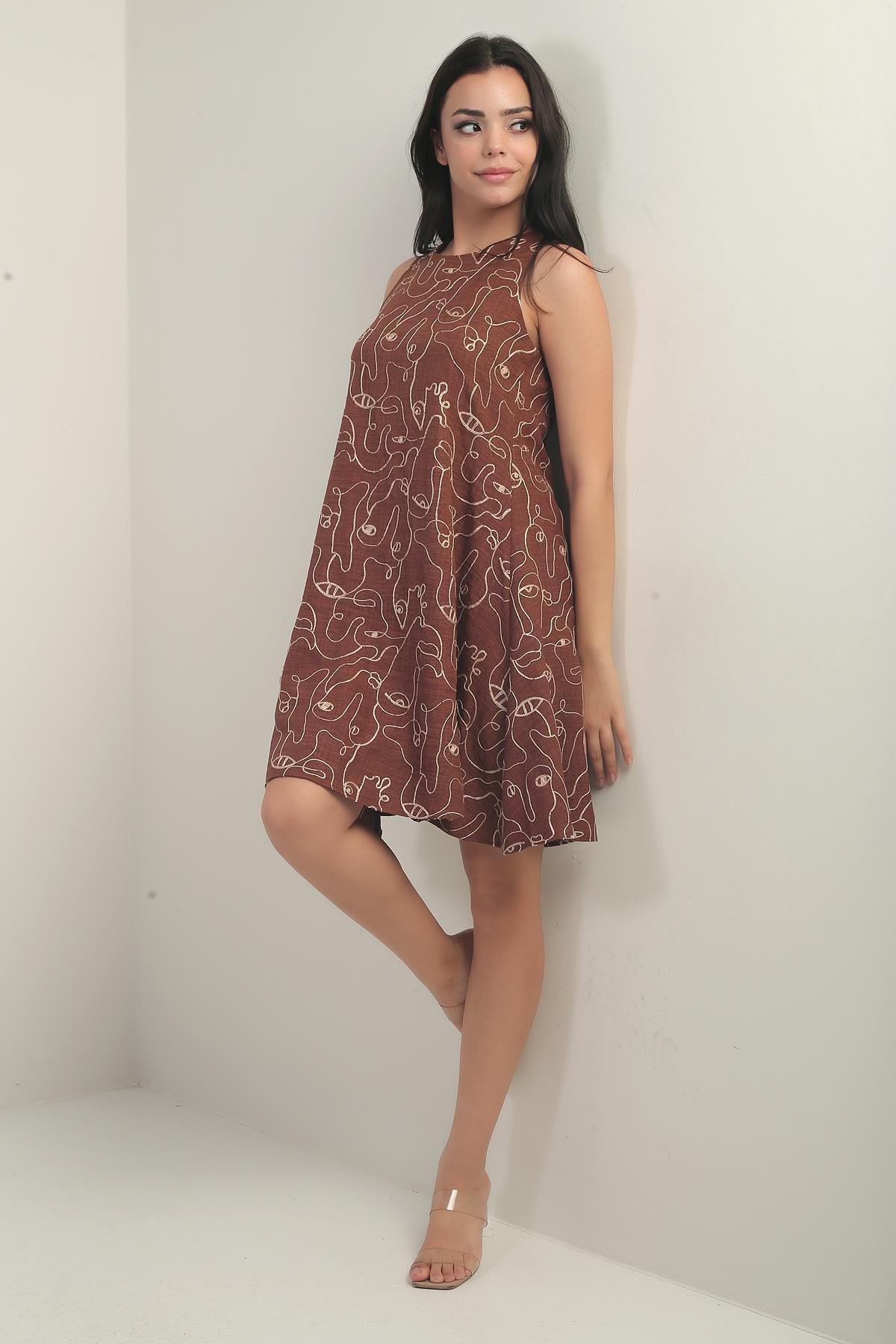 S-25Y0840039Kadın Yuvarlak Yaka Kordeneli Kolsuz Kısa Elbise