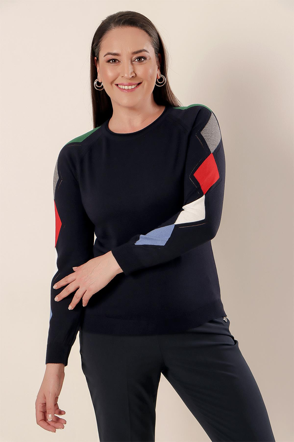 Kol Baklava Desenli Ön Kısa Arka Uzun Büyük Beden Akrilik Kazak (S-23K1800002)