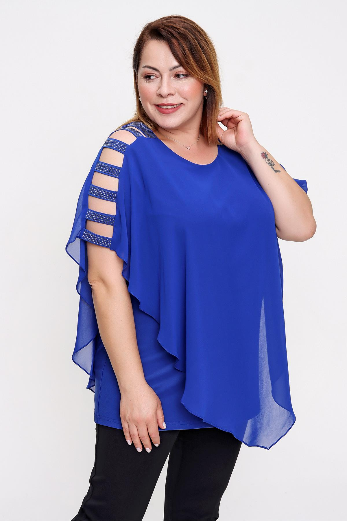 S-21K1040053Kolları Şeritli Üstü Şifon Büyük Beden  Bluz