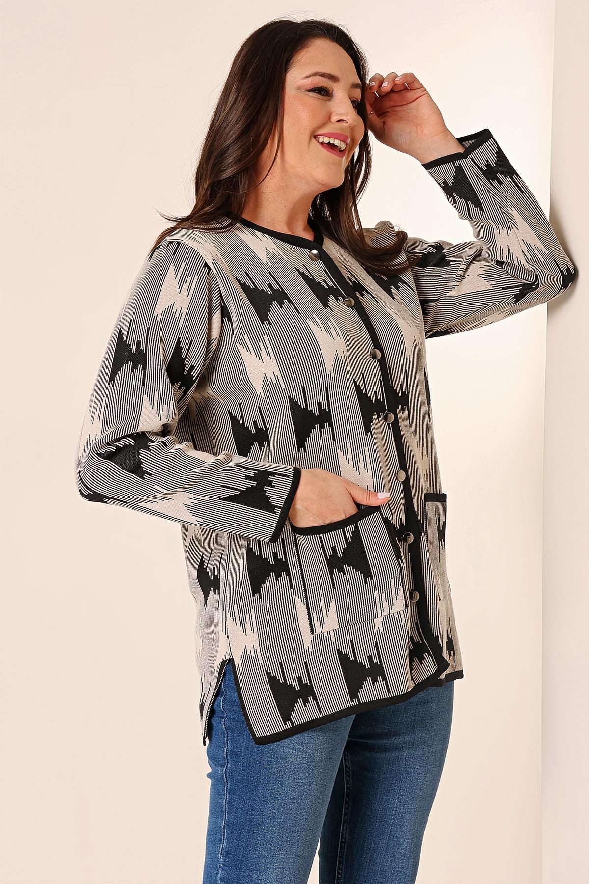 Önü Düğmeli Cepli Desenli Büyük Beden Hırka (S-23K1800027)