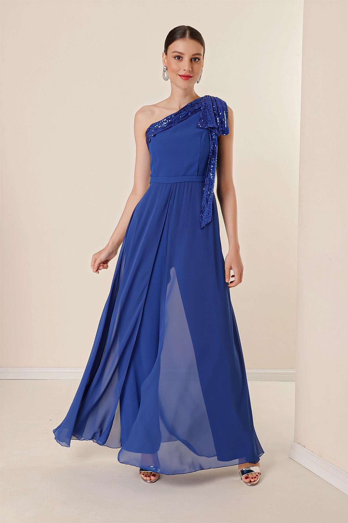 Pulpayet Yaka Tek Omuzlu Üstü Şifon Krep Tulum (S-23K2580032)