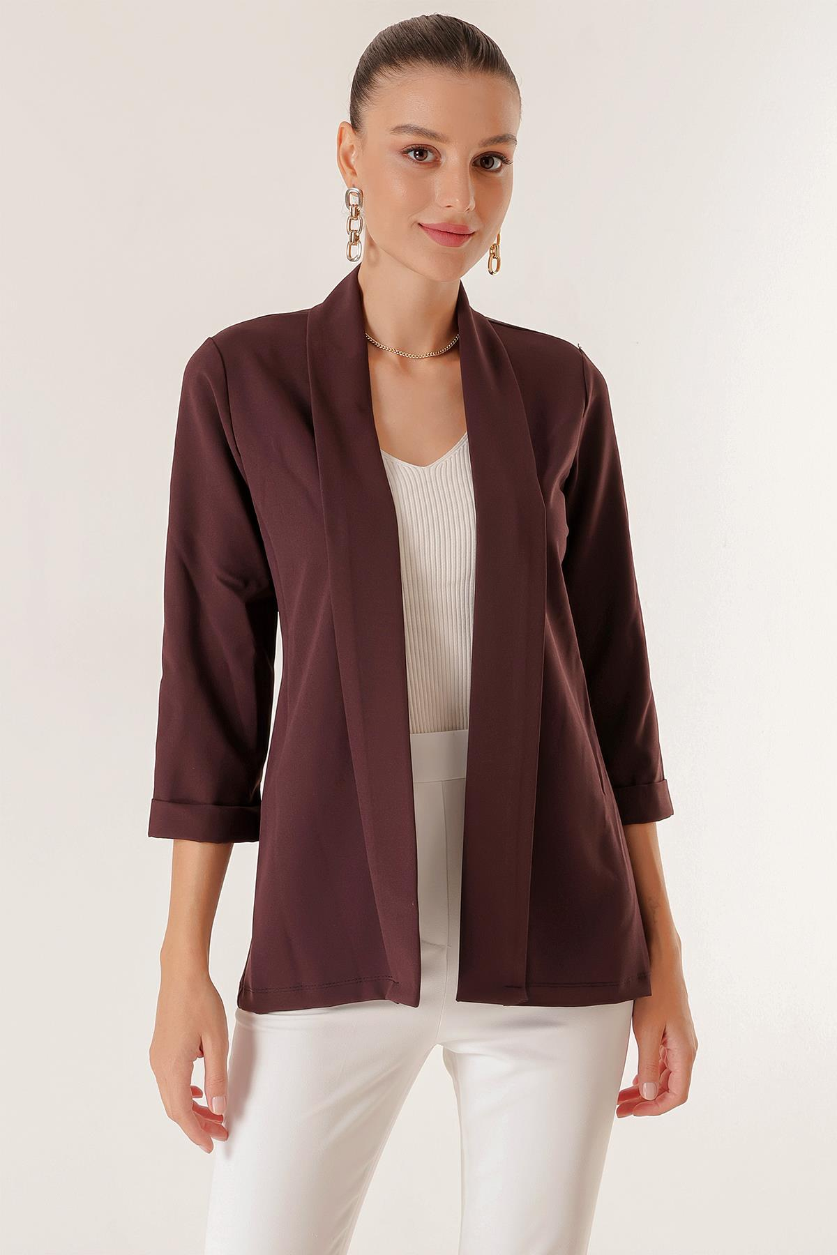 S-23K4140006Şal Yaka En Boy Likra Duble Kol Kumaş Kısa Ceket