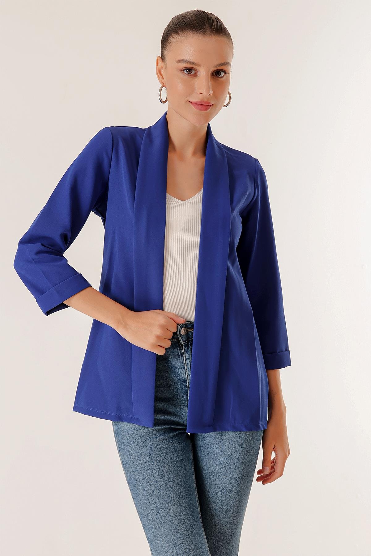 S-23K4140006Şal Yaka En Boy Likra Duble Kol Kumaş Kısa Ceket