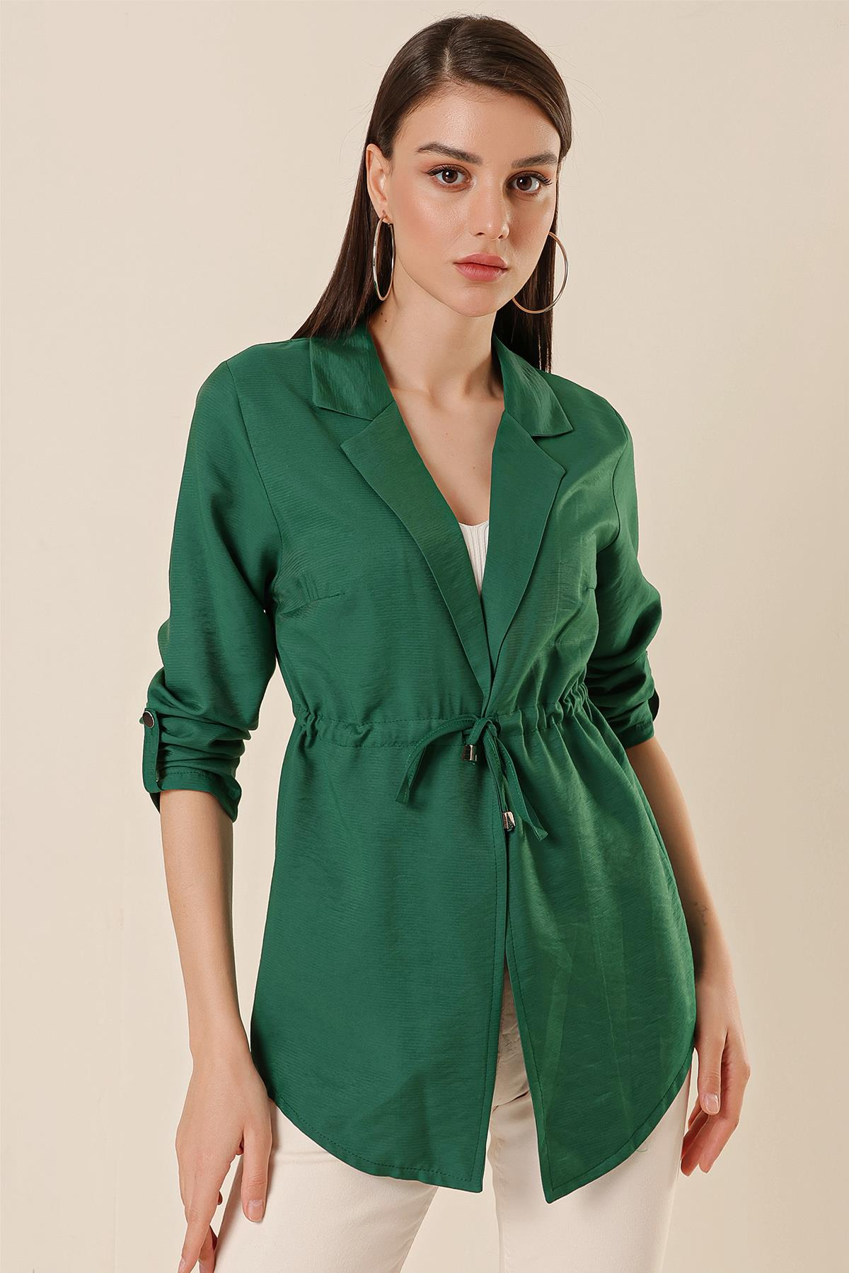 Şal Yaka Kol Katlamalı Beli İpli Tencel Ayrobin Ceket (S-23K3310013)