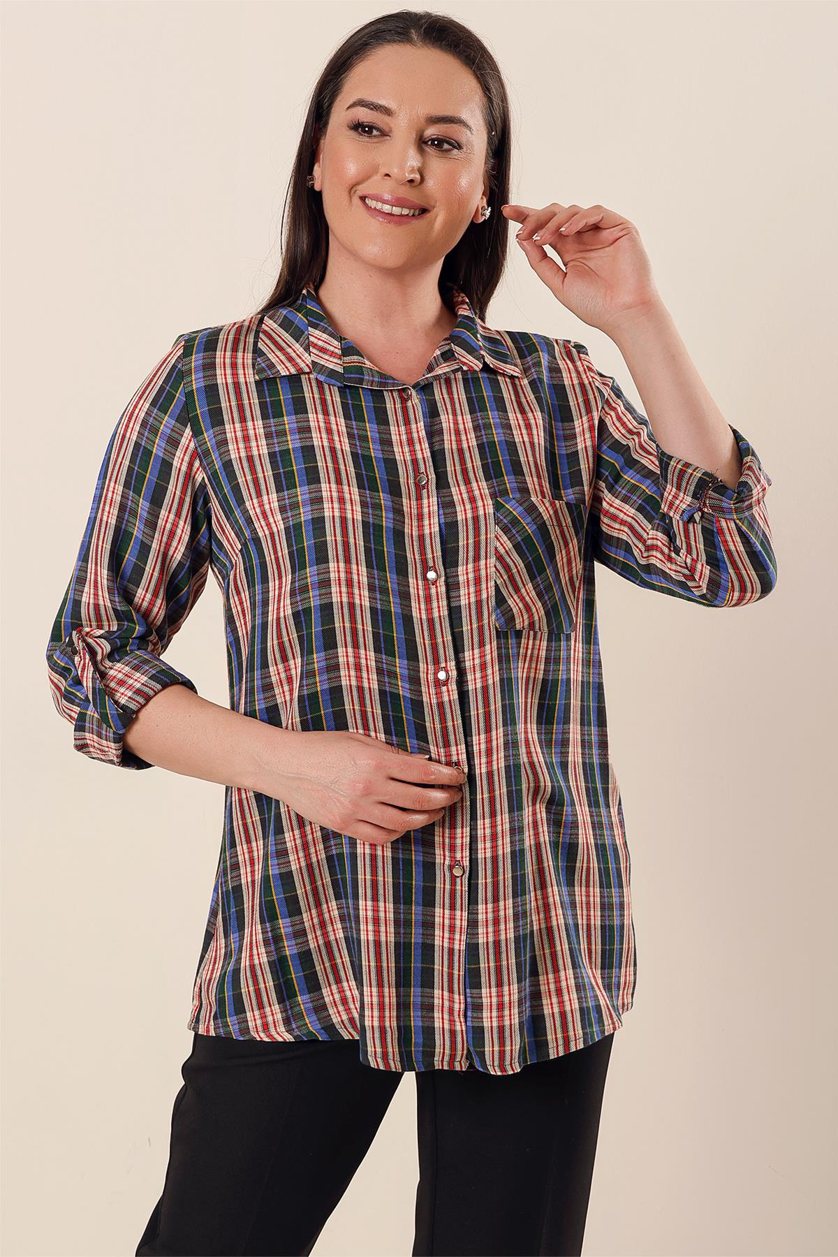 Tek Cepli Metal Düğmeli Kareli Büyük Beden Gömlek (S-23K4040016)
