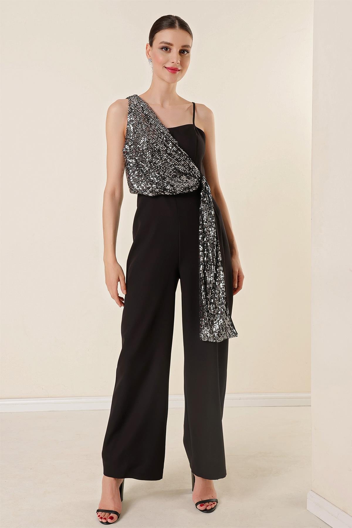 Tek Tarafı İp Askılı Tek Tarafı Pul Payet Şal Aksesuarlı Tulum (S-23K2580025)