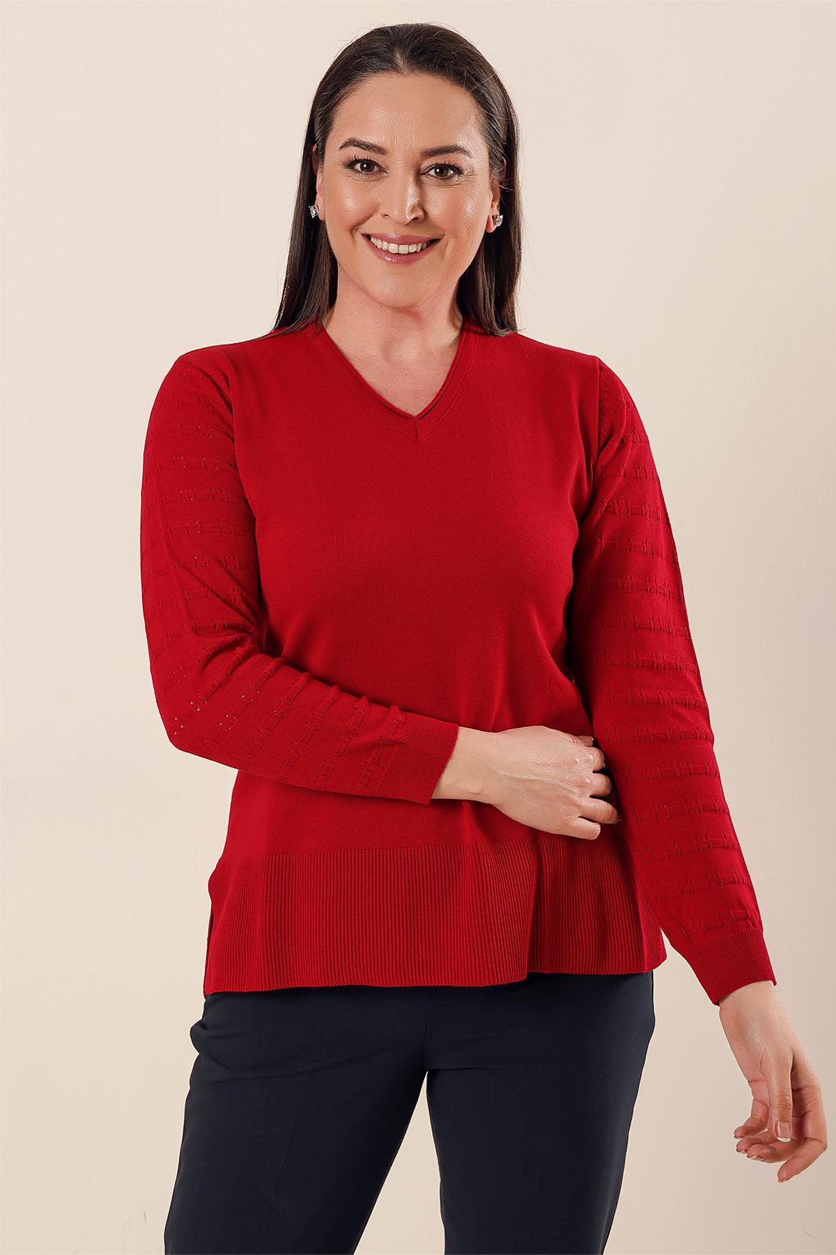 V Yaka Kolları Modelli Yanları Yırtmaçlı Büyük Beden Akrilik Kazak (S-23K1800006)