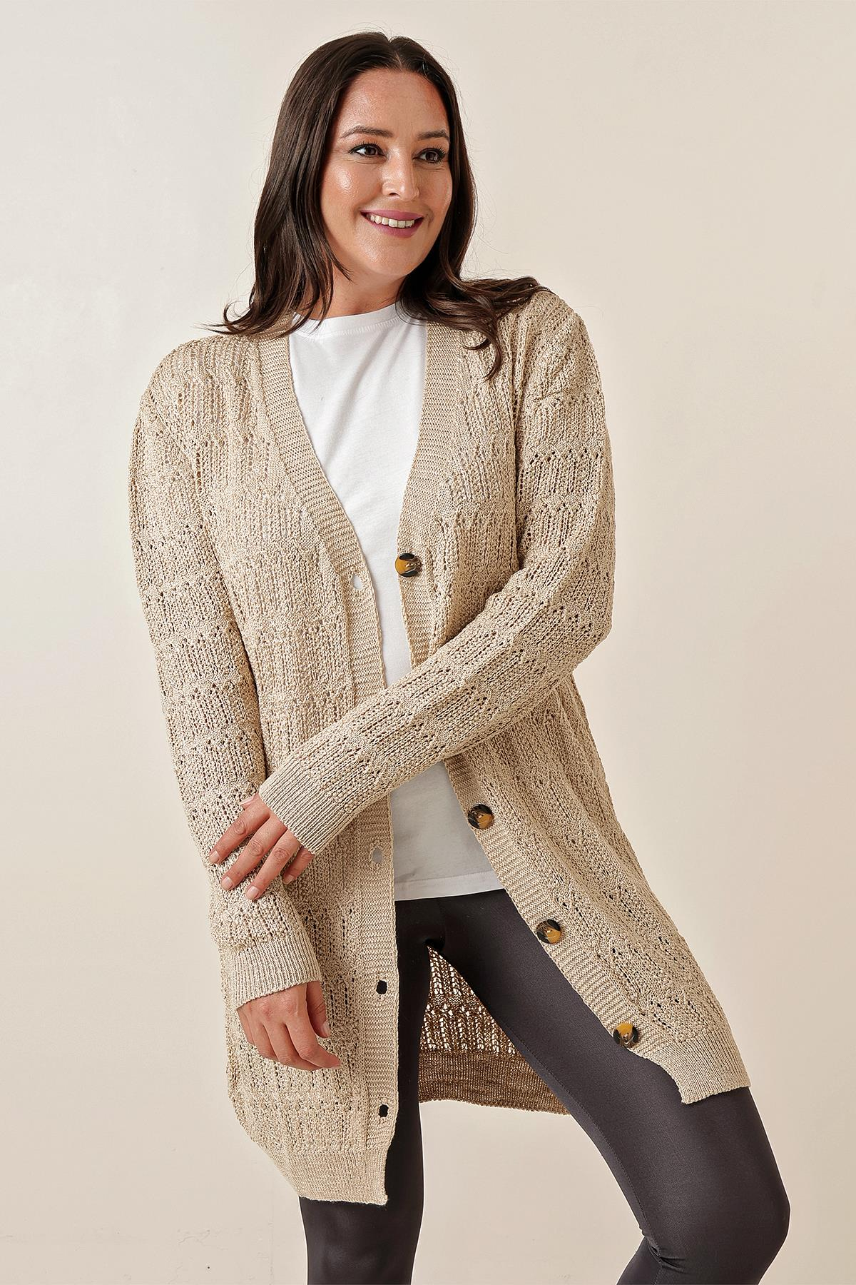S-23K1800007V Yaka Önü Düğmeli Rahat Kalıp Merserize Hırka