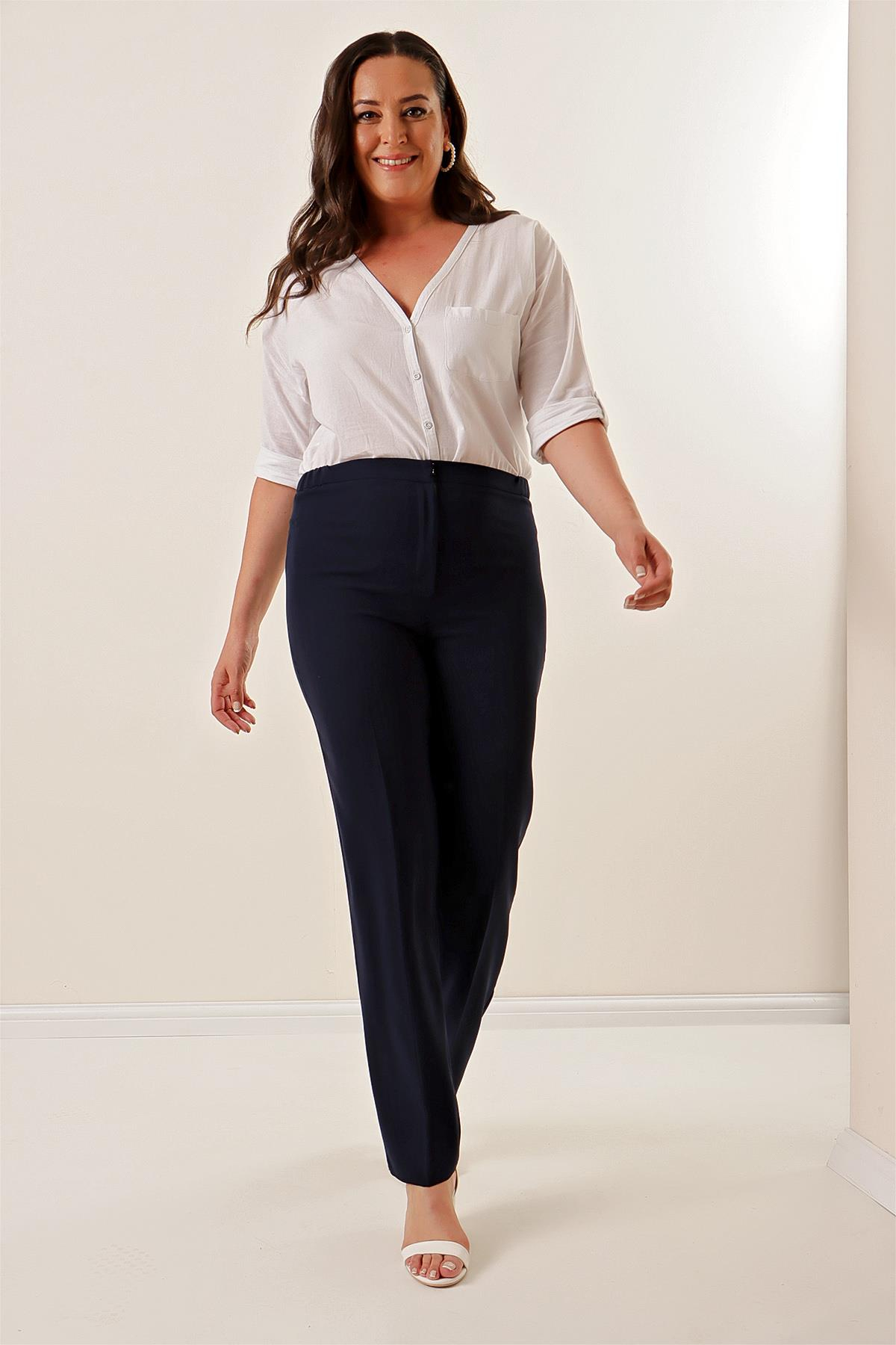 Yanları Lastikili İthal Krep Geniş Beden Pantolon (S-22K1190014)