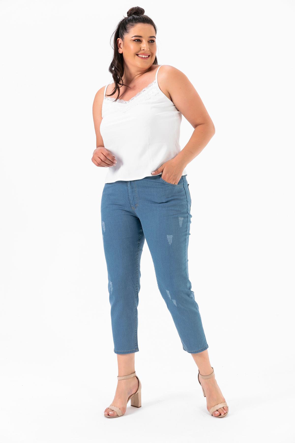 S-20Y1060010Yüksek Bel Önü Eskitme Desen Kot Pantolon